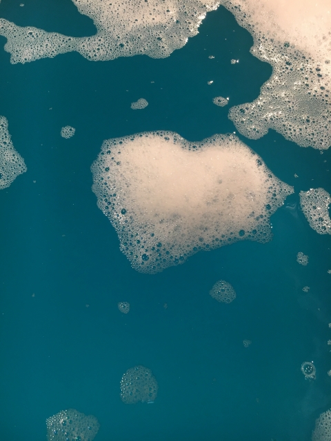 - 「バスボムが溶けきるまでに体を洗えるかな?」